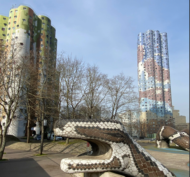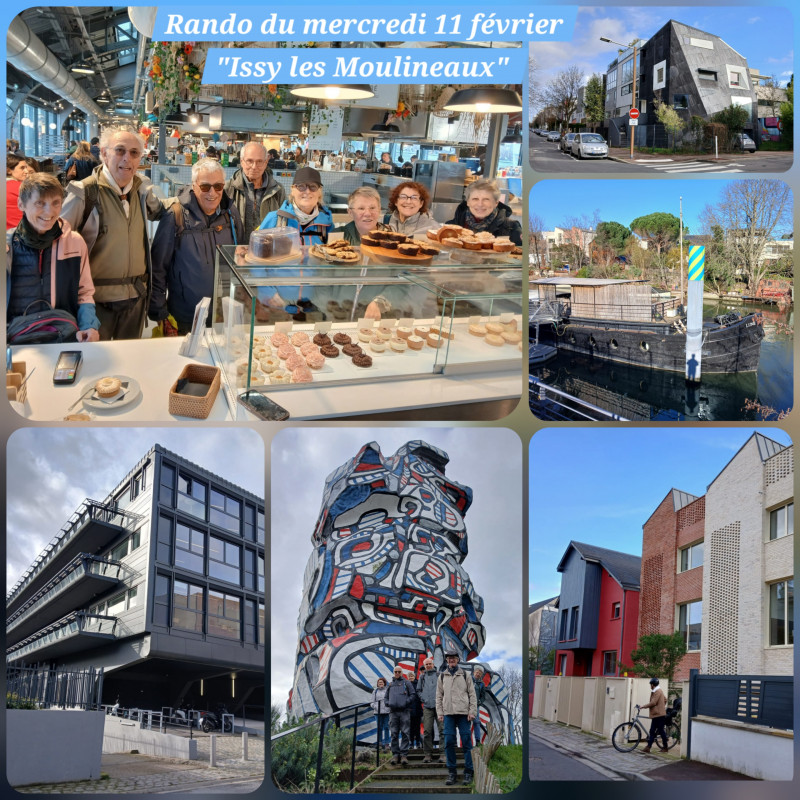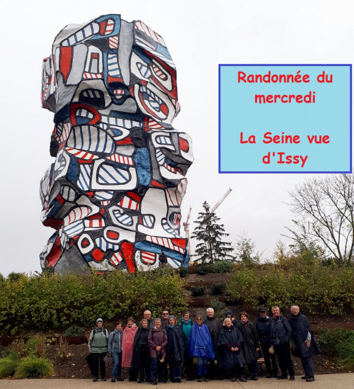 Rendez-vous à la gare de Marly avec Jacques et Yves, et pour la deuxième fois, pas de trains... Nous partons donc à pied jusqu'à La Celle St Cloud, prenons un bus jusqu'à Sèvres et rejoignons Issy par le tram. Compliqué mais joyeux. Avec en récompense les délicieux gâteaux de la championne du monde des pâtissiers. On peut alors.... enfin...faire la randonnée dans l'île St Germain avec son parc, la Tour aux Figures, sculpture monumentale de Jean Dubuffet et le quartier résidentiel qui fût le quartier ouvrier et qui se métamorphose grâce aux prouesses architecturales remarquables.