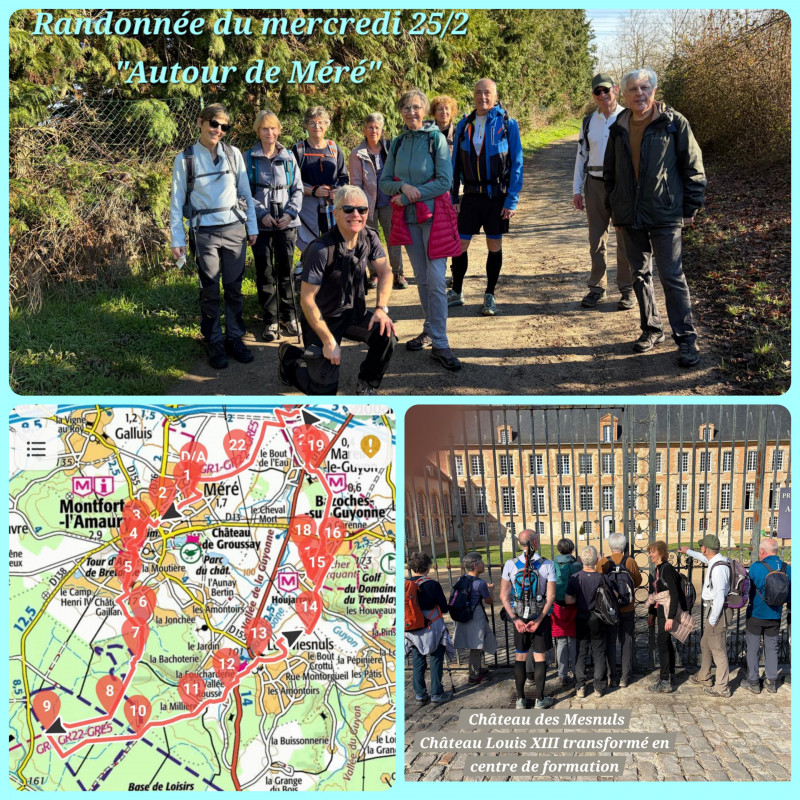 Un temps radieux a accompagné cette belle balade d’environ 19 km au départ de Mareil-le-Guyon.Nous avons sillonné les sentiers autour de Montfort-l'Amaury, Les Mesnuls et Bazoches-sur-Guyonne, avec un passage remarqué devant la Fondation Brigitte Bardot.La météo, plus que printanière, nous a offert une température de 21°C après le pique-nique .