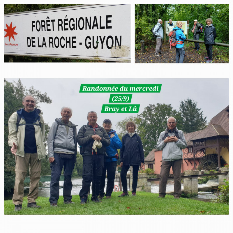 Pour cette randonnée à la journée, Jacques et Yves, nos animateurs bénévoles au Marly Club, emmènent le petit groupe de 6 courageux au coeur de la forêt de la Roche Guyon.Ils traversent 2 beaux villages Chérence et Bray-et-Lû et s'arrêtent au moulin de Fourges, charmant endroit, étape gourmande et romantique le long de l'Epte qui marque la frontière entre le Vexin Français et le Vexin Normand.