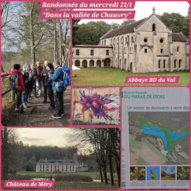 Au départ de Méry-sur-Oise, après une vue sur le château de Méry, une boucle de 16 km en vallée de Chauvry a fait découvrir aux 8 participants, les environs de Mériel, Villiers-Adam et Frépillon. Encadrée par Vincent et Pierre, cette randonnée a aussi offert de belles vues sur la réserve naturelle du Marais de Stors.