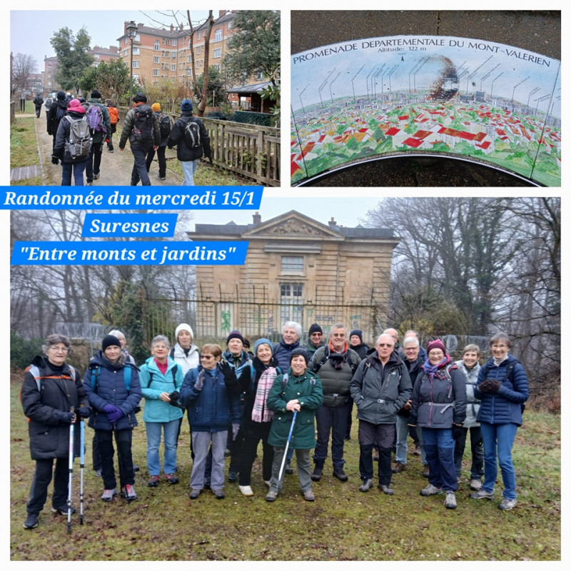 La brume hivernale de ce mercredi 15 janvier n'a pas découragé 22 randonneurs du Marly Club, guidés par Jacques et Yves nos animateurs bénévoles pour un parcours de 14km du Pavillon du Butard dans les bois de St Cucufa vers la cité-jardin de Suresnes et le Mont Valérien.