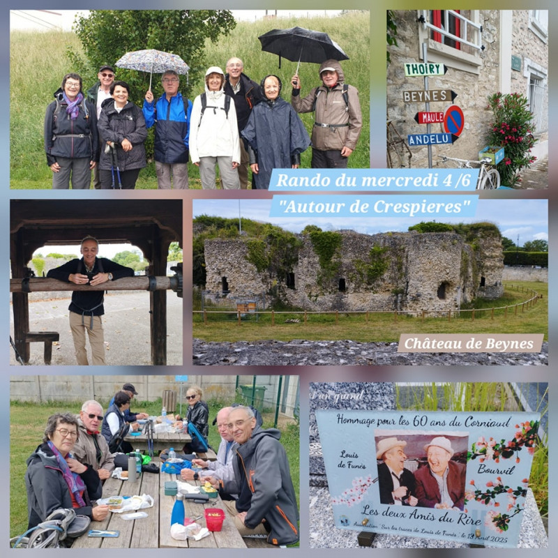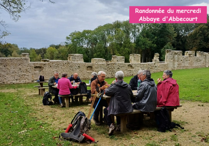 Le second groupe, 10 personnes, partis 2h plus tard, a effectué un parcours de 15km dans la région d’Orgeval et s’est restauré face aux vestiges médiévaux de l’abbaye d’Abbecourt. Nos courageux randonneurs ont poursuivi leur marche l’après- midi sous une pluie battante.