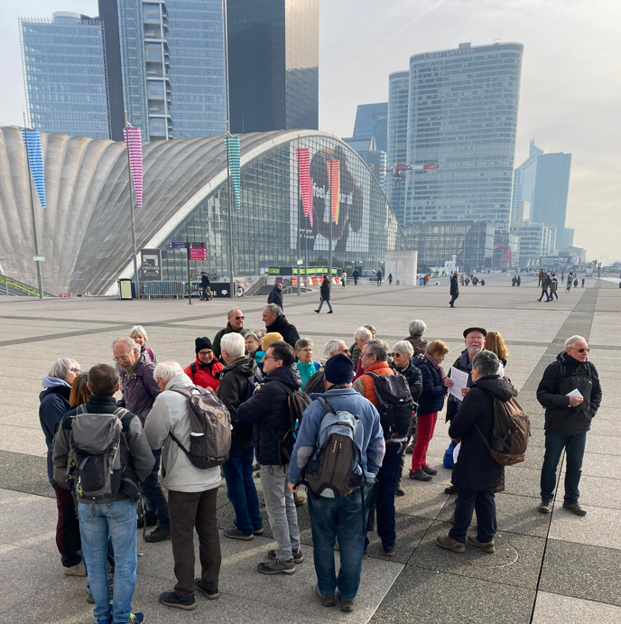 Pour la dernière randonnée d’hiver, 30 participants étaient au rendez- vous pour parcourir 14 km dans le gigantesque quartier d’affaires de la Défense et ses environs. C’est un véritable musée futuriste à ciel ouvert qu’ils ont traversé, avec ses immenses tours de verre et de béton coloré et ses 69 œuvres d’art plus extravagantes les unes que les autres.