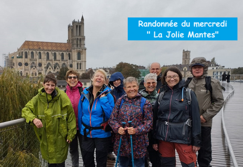 Le premier groupe, composé de 11 randonneurs, partis tôt le matin pour 20 km de marche autour de Mantes-la- Jolie sont parvenus à parcourir la campagne avoisinante sans une goutte de pluie.. Ils ont pu admirer la collégiale Notre -Dame, édifiée au XIIème siècle et finalement s’y réfugier lorsque la pluie est survenue en début d’après- midi.