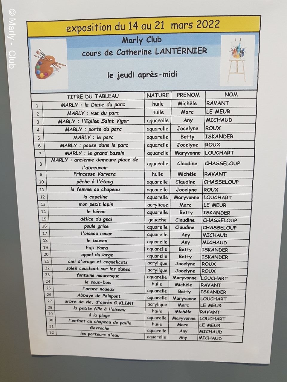 EXPOSITION PEINTURE AQUARELLE DESSIN 2022